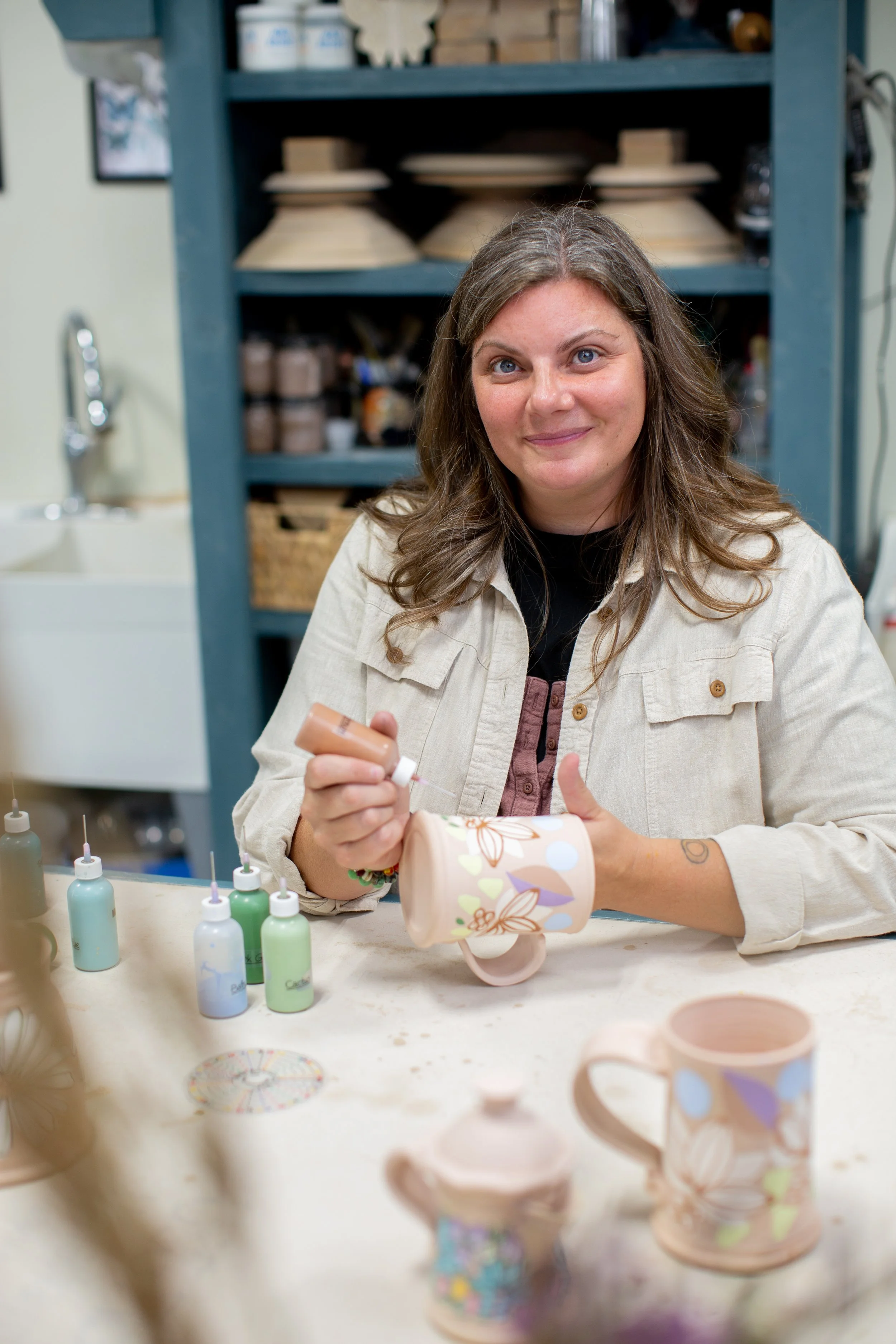 She has a passion for learning and loves to see people (and things) thrive. Working in clay combines her true loves: earth minerals, creating forms, playing in the mud, growing community, and fires.
