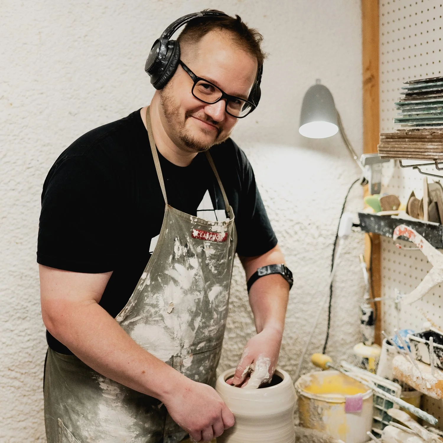 Through demonstrations and videos, he shares the process with an approachable mix of humor, intensity, and creative freedom - embracing both the discipline and the joyful chaos of making. The result is work that feels deeply personal while remaining rooted in the long tradition of functional pottery.