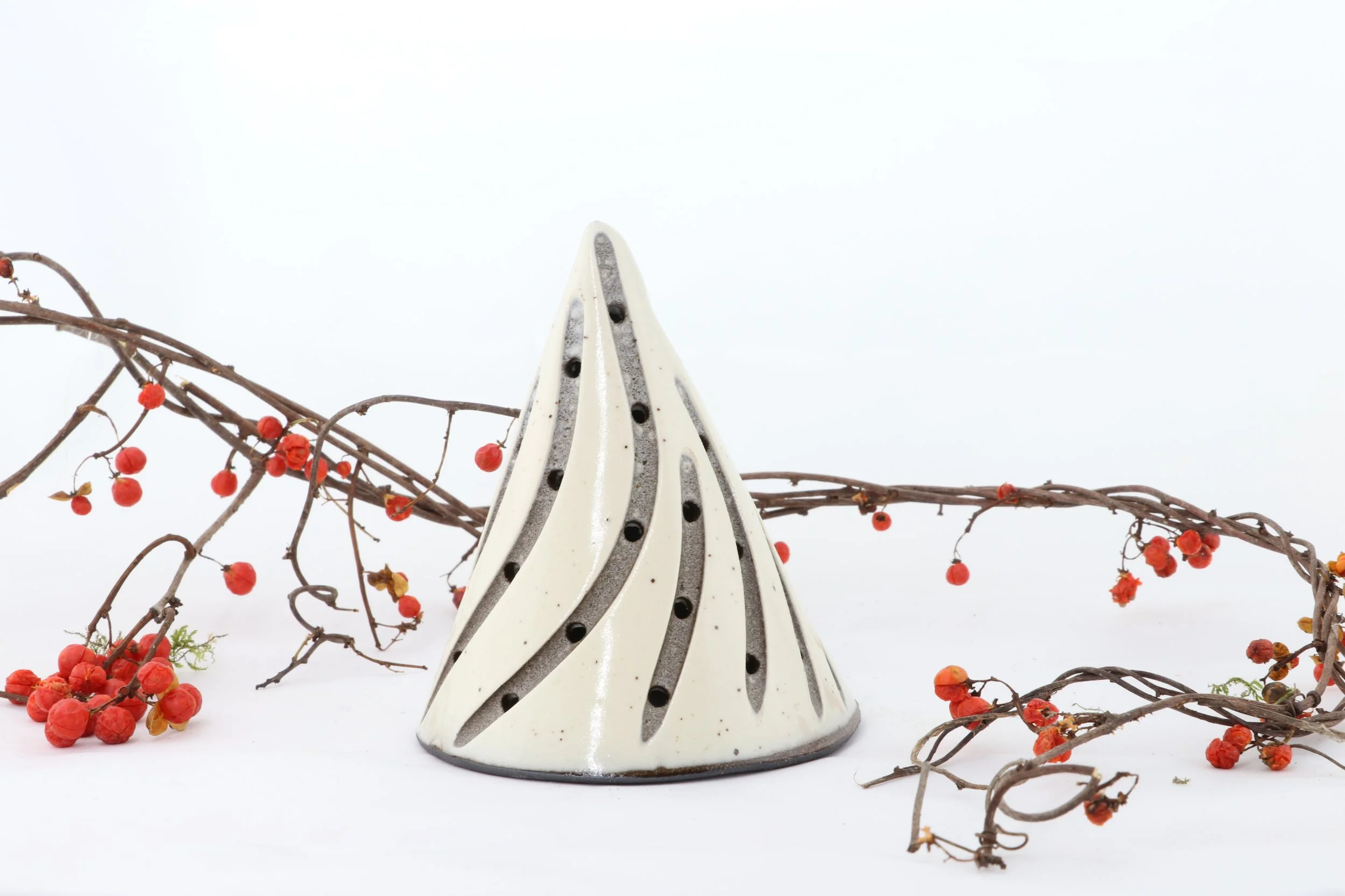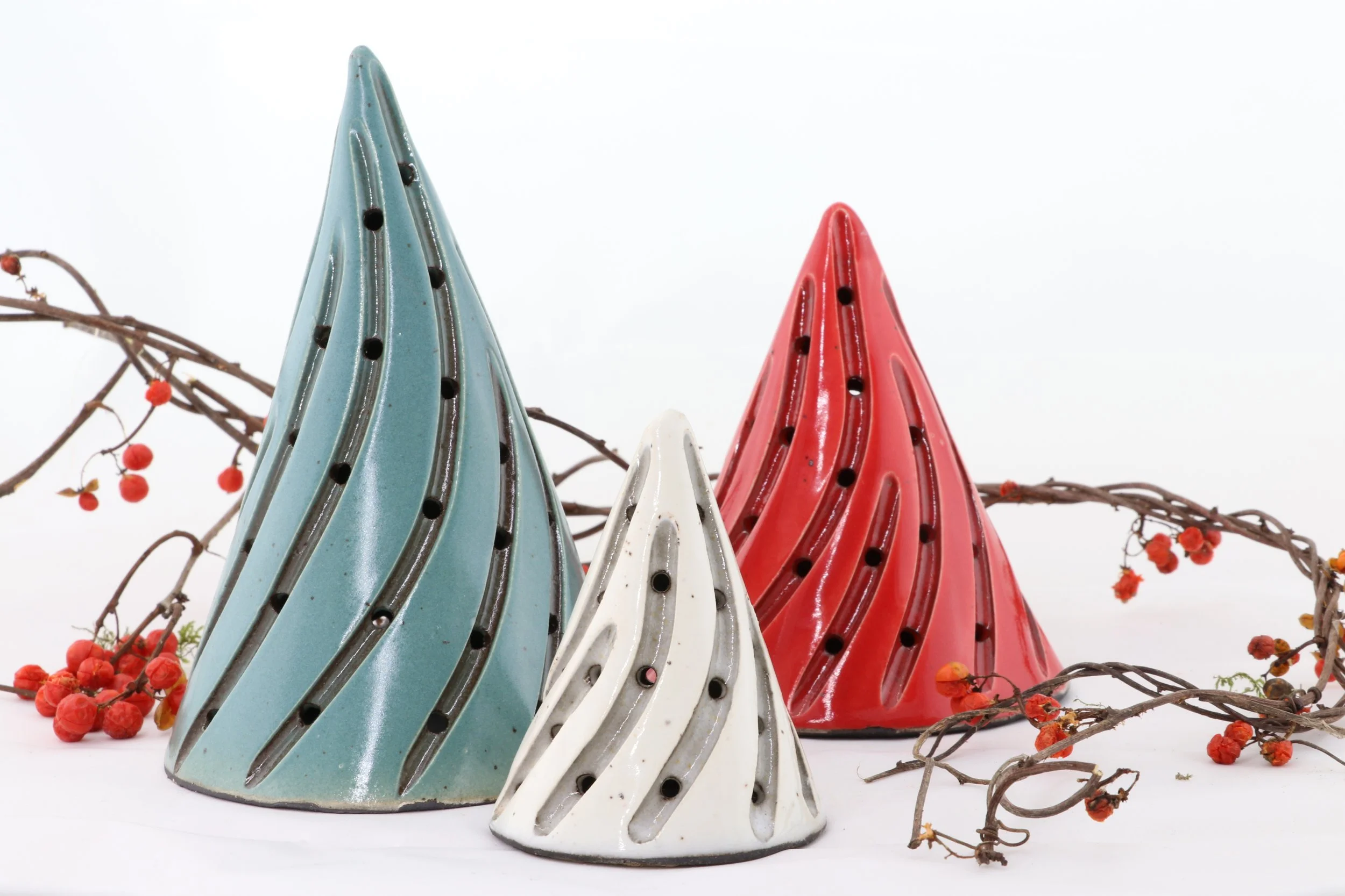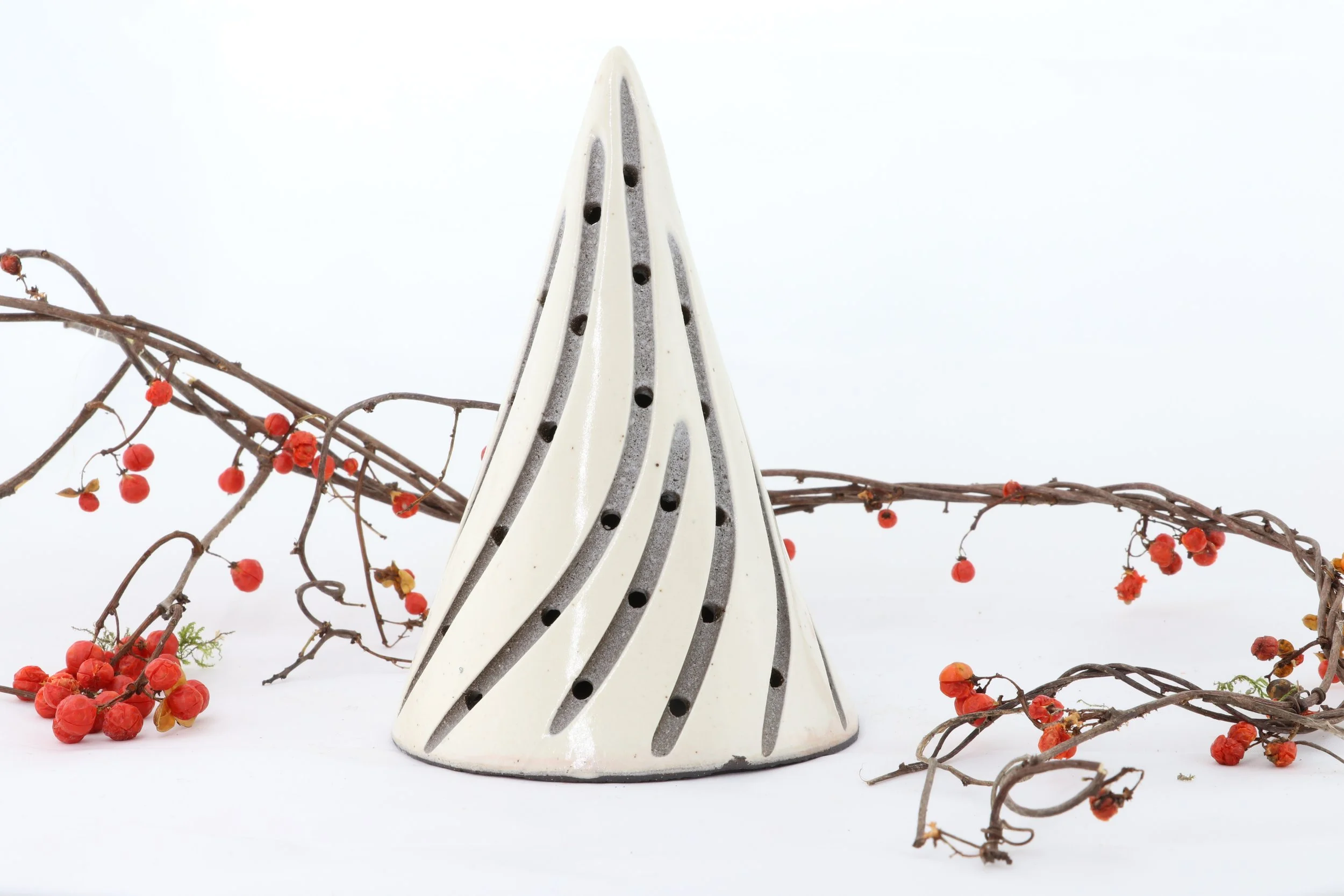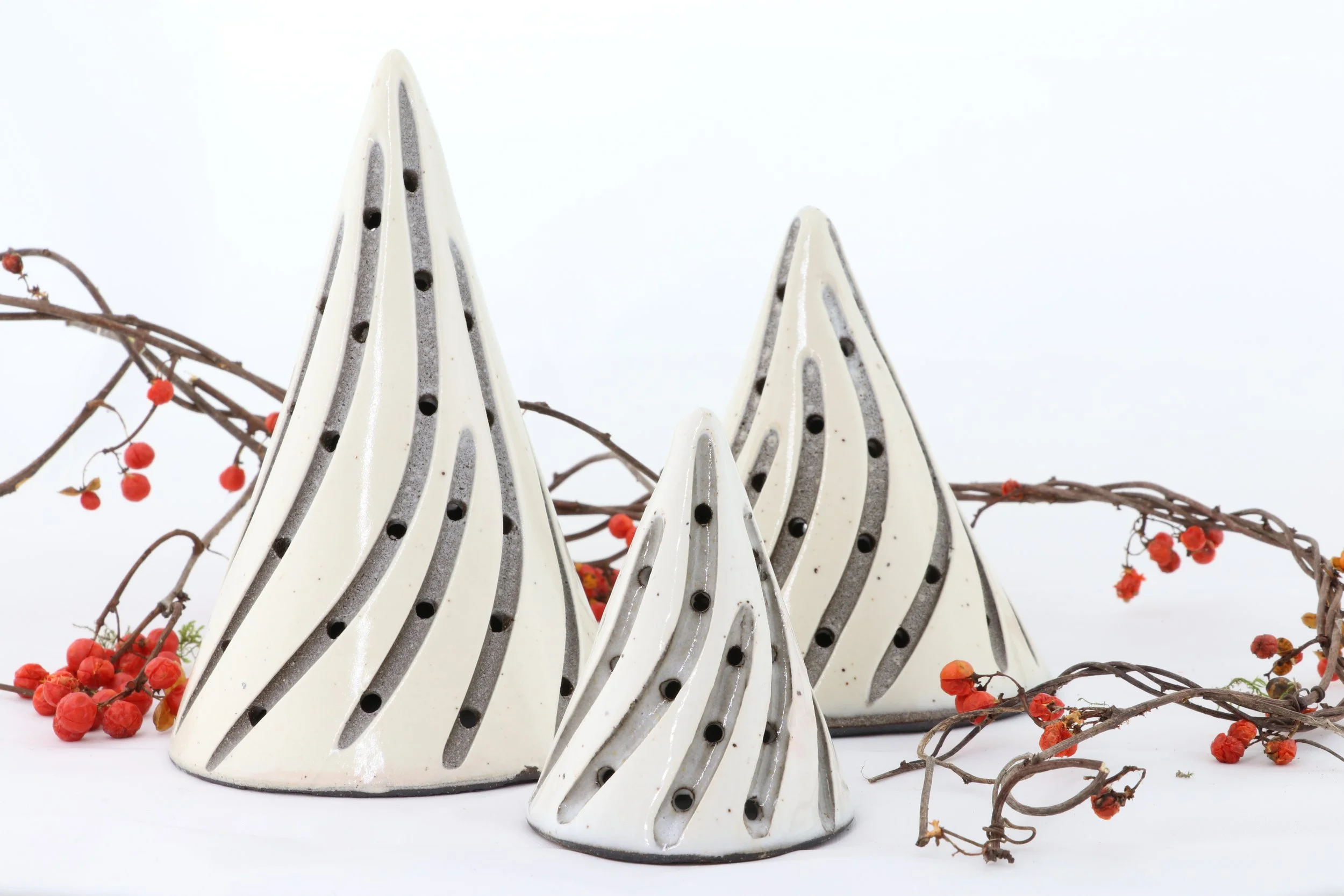 Our trees are slab built from black clay, dipped in porcelain, and carved individually. Due to our hands on process, each piece we make will vary slightly from one another - no two are the same, truly giving you a unique piece of art.
