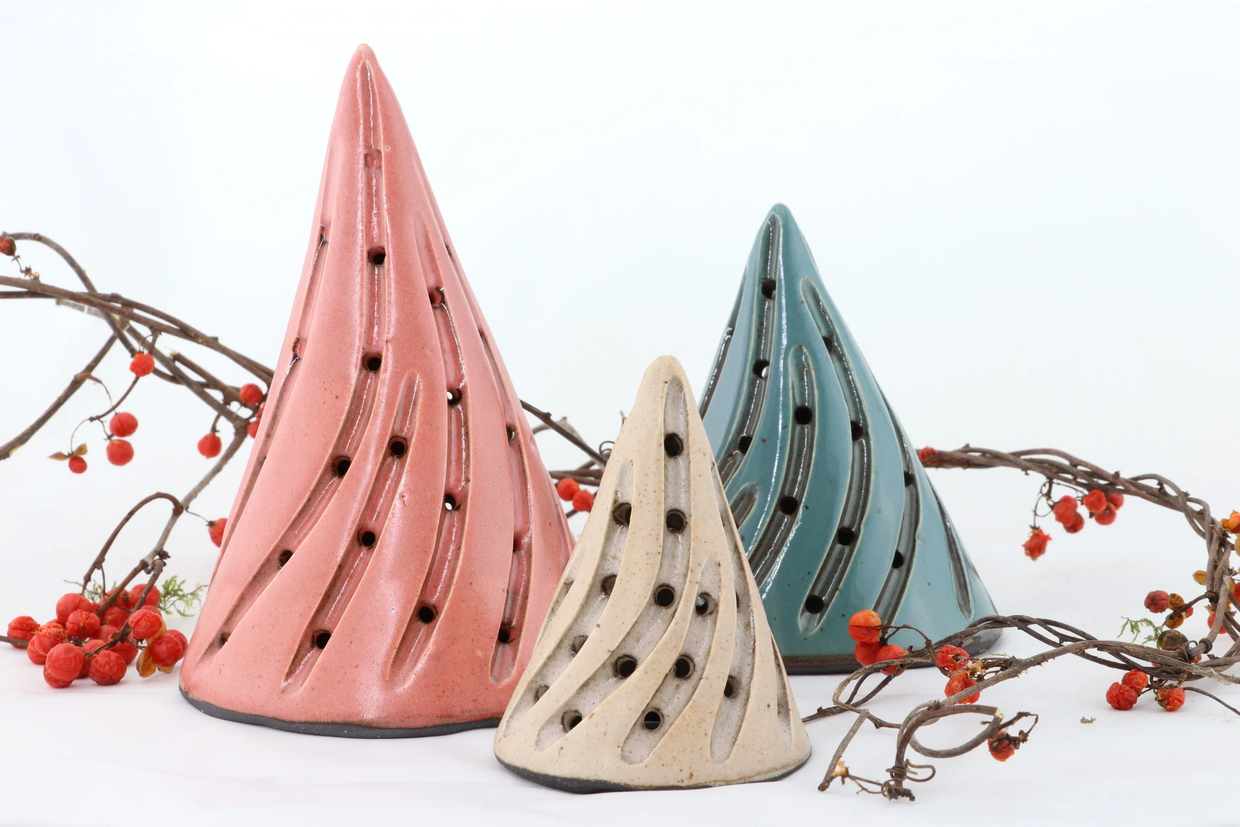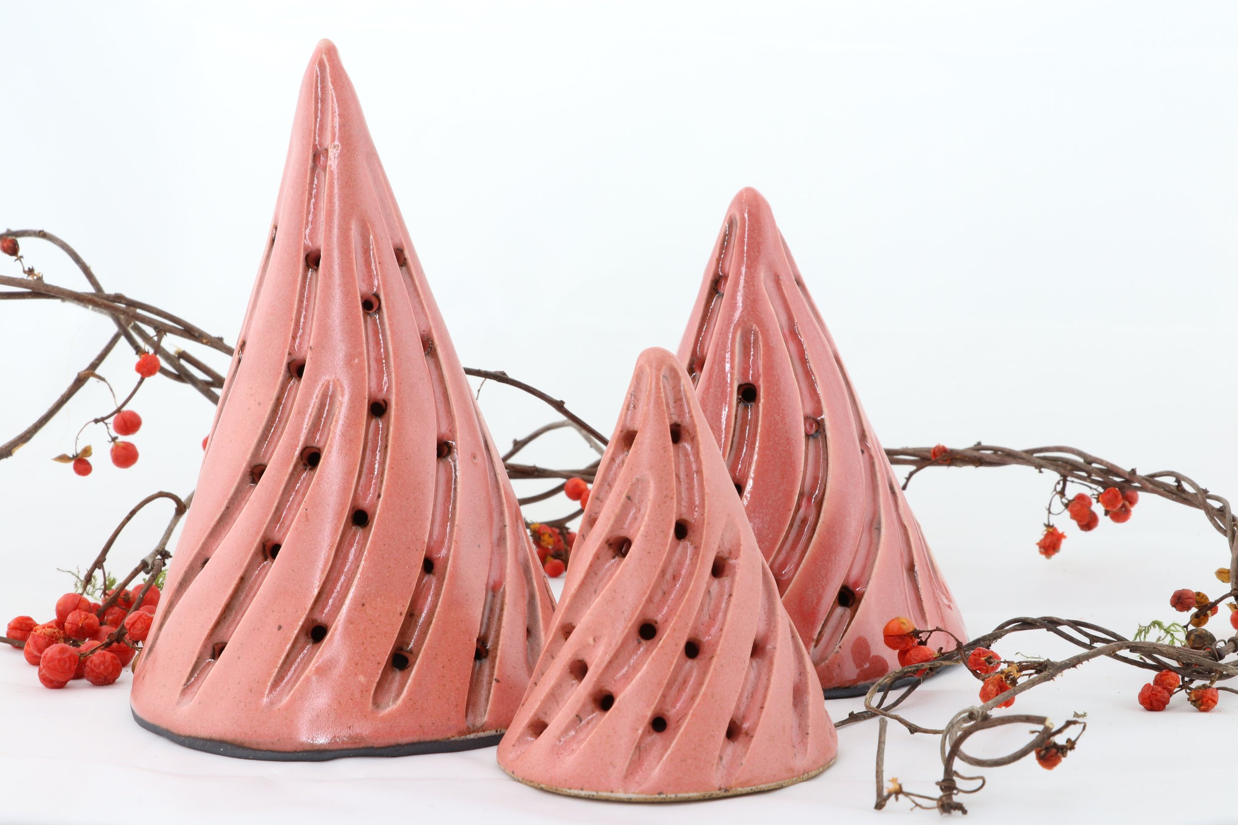 Our trees are slab built from black clay, dipped in porcelain, and carved individually. Due to our hands on process, each piece we make will vary slightly from one another - no two are the same, truly giving you a unique piece of art.
