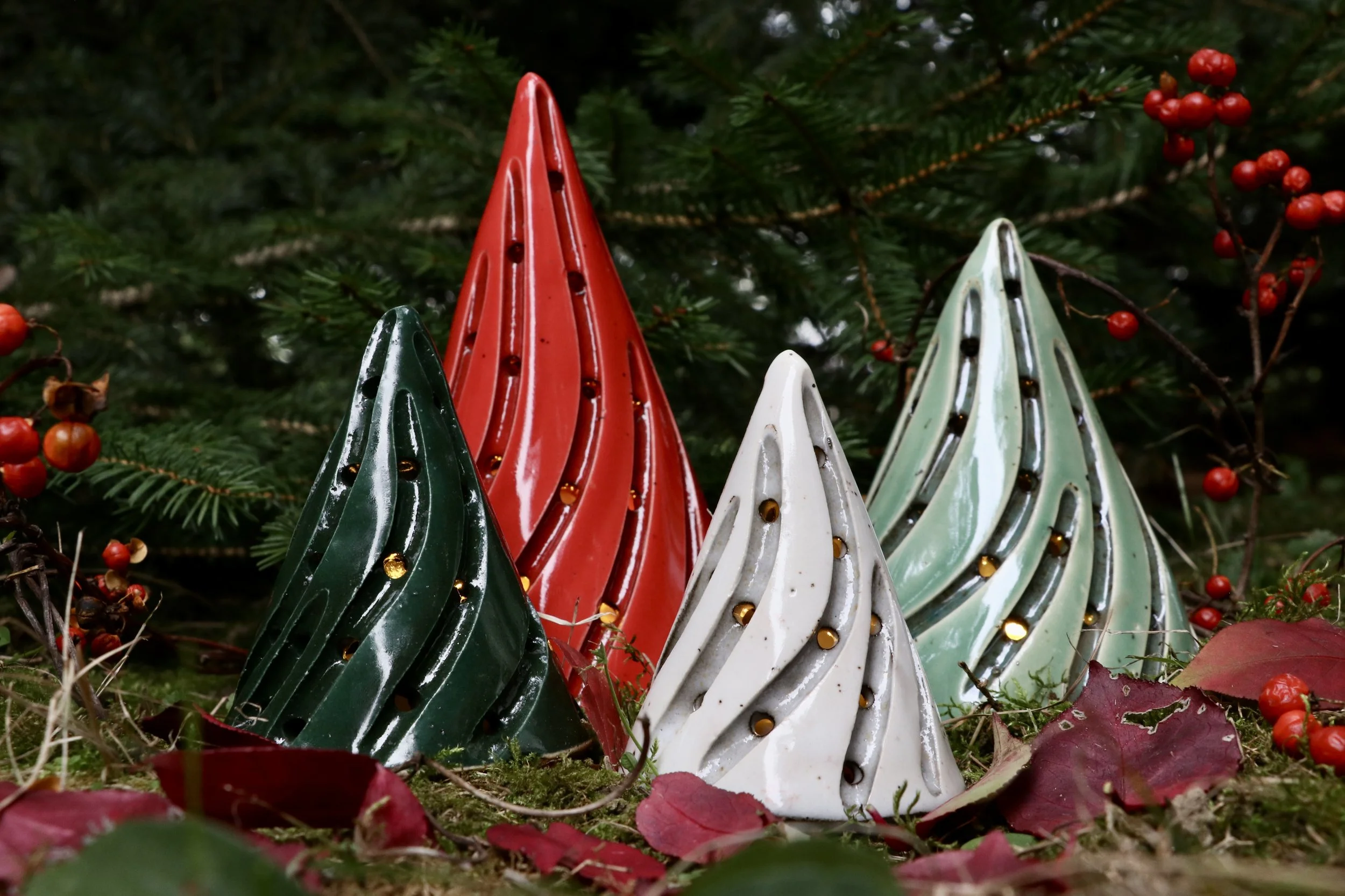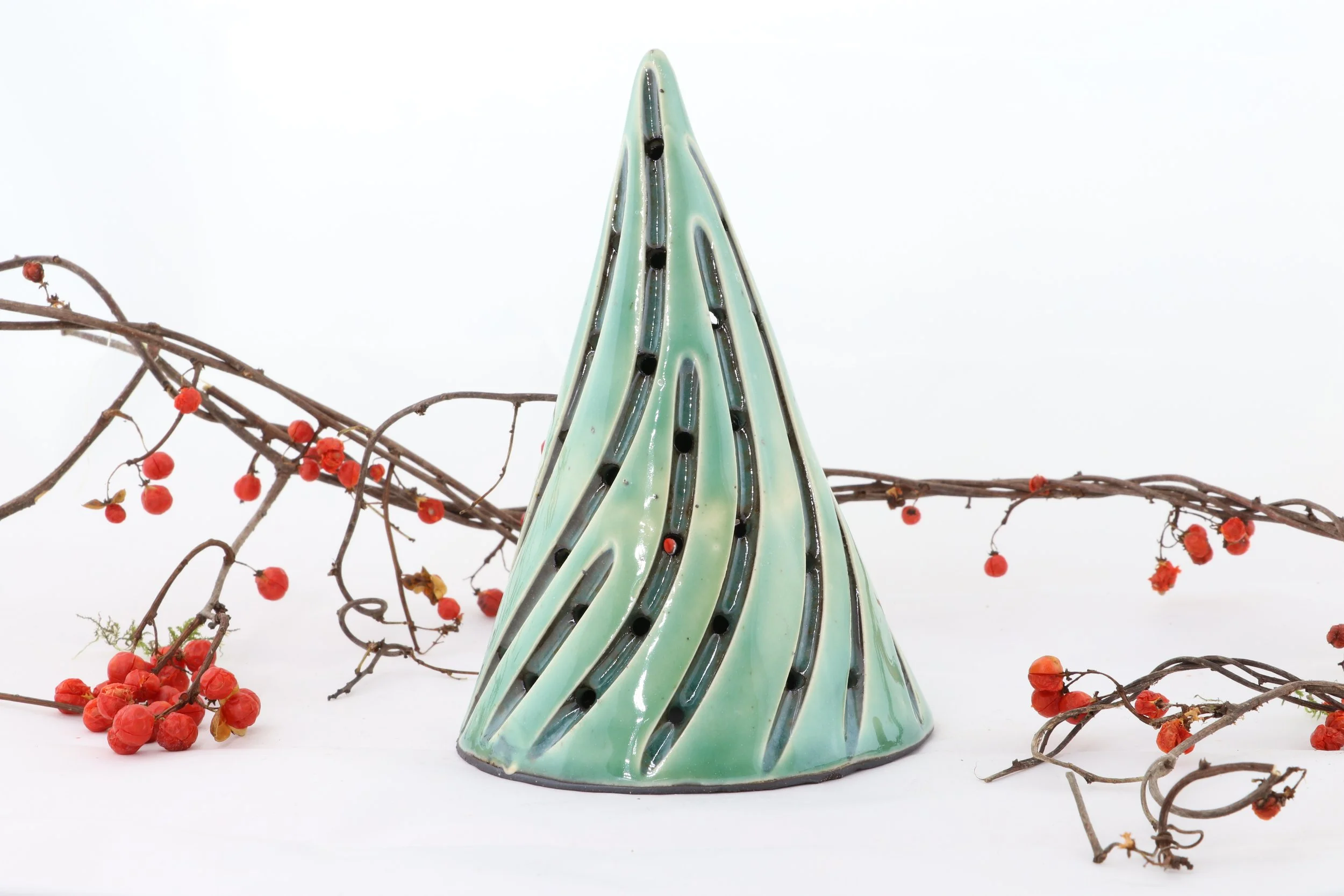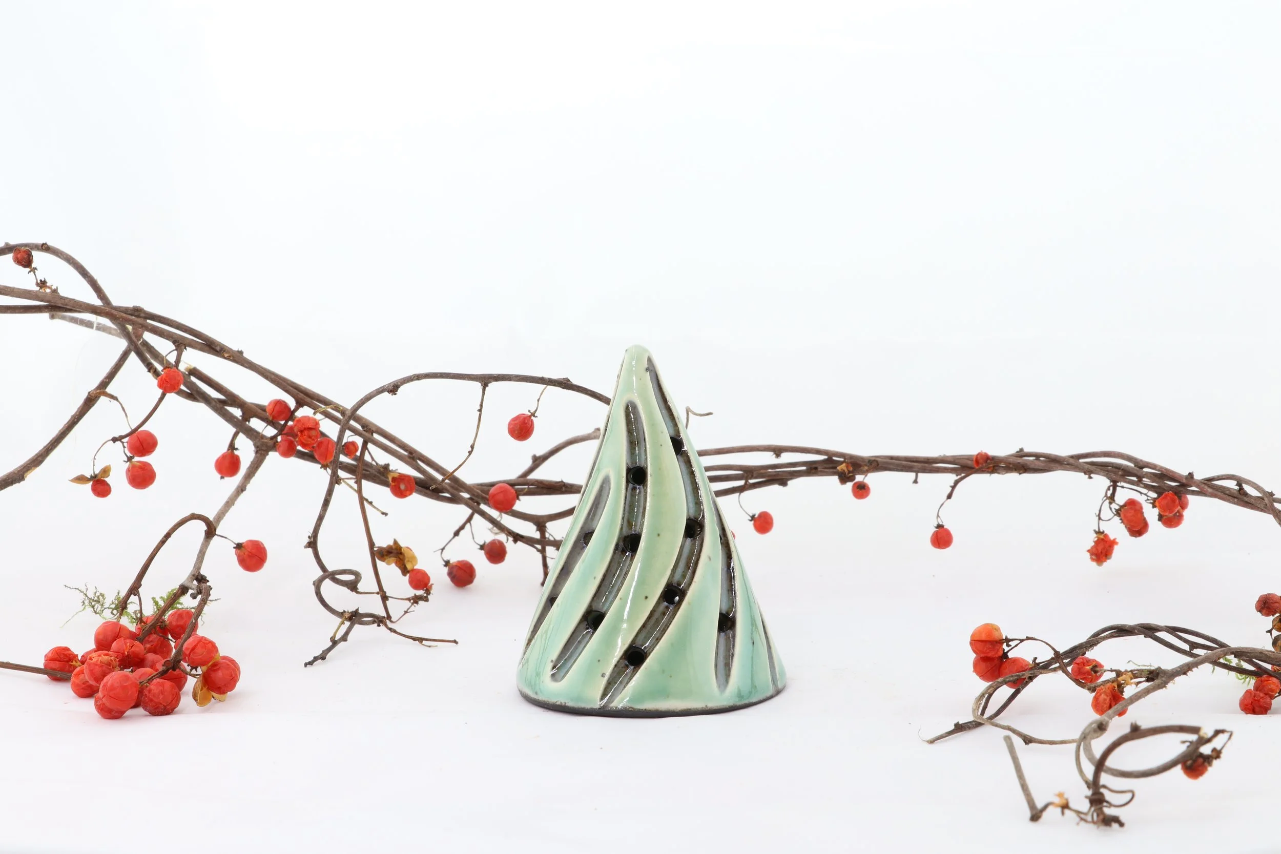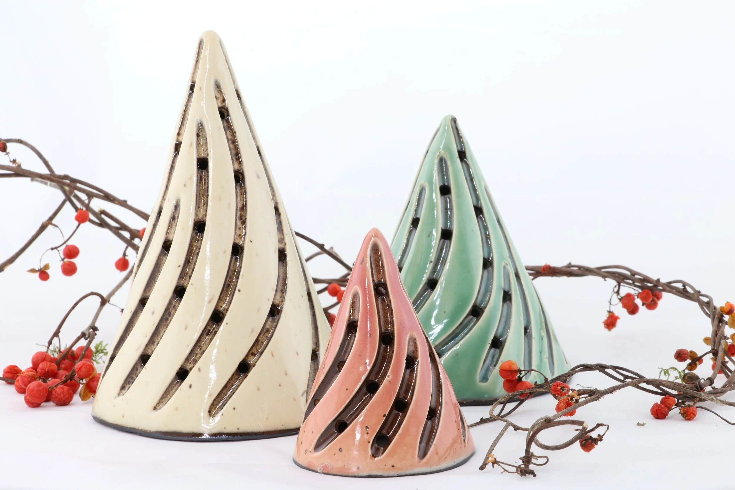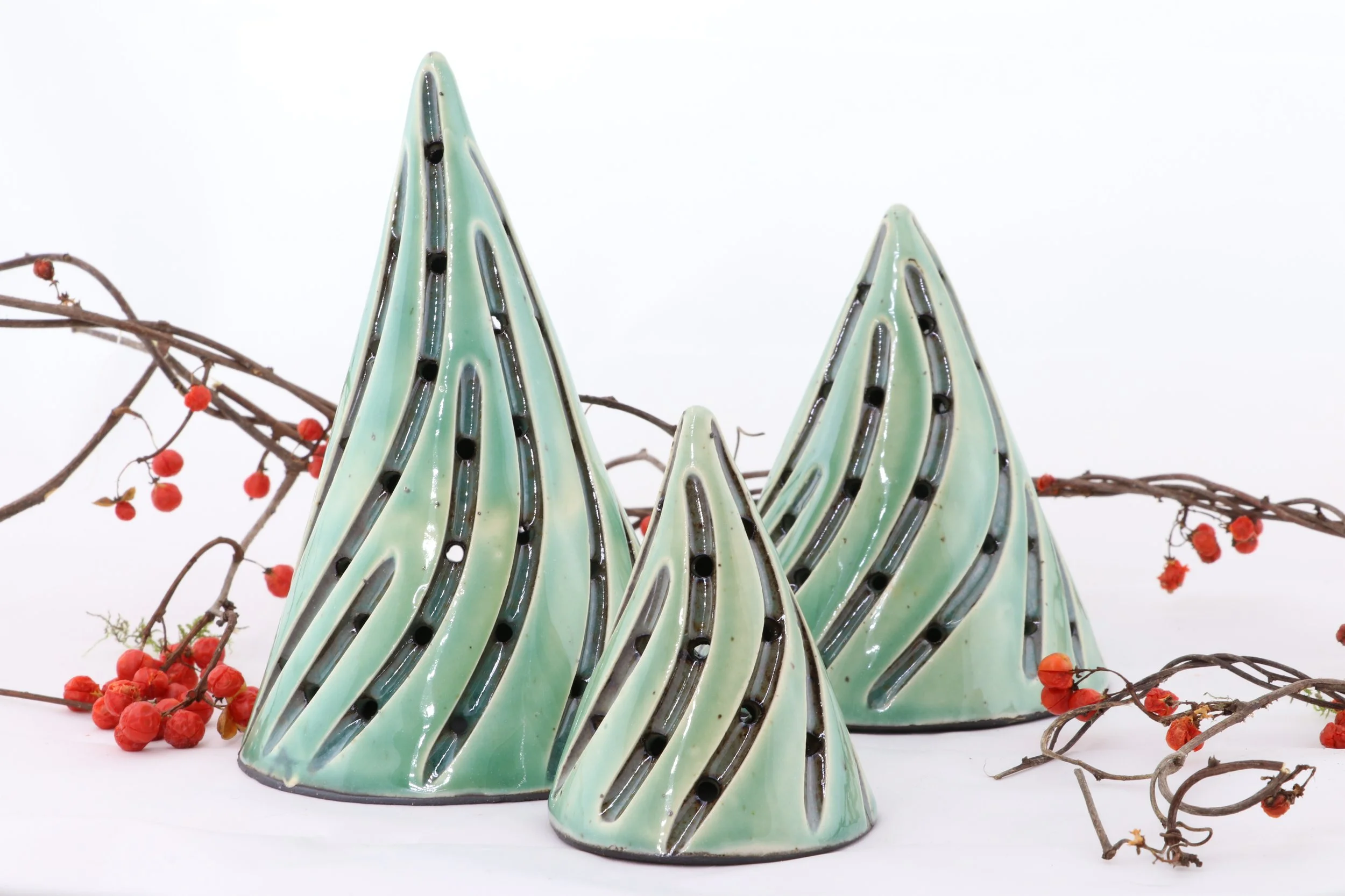 Our trees are slab built from black clay, dipped in a porcelain, and carved individually. Due to our hands on process, each piece we make will vary slightly from one another - no two are the same, truly giving you a unique piece of art.